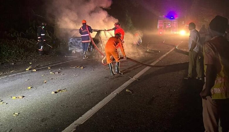 ശബരിമല തീർത്ഥാടകർ സഞ്ചരിച്ച കാറിനു തീപിടിച്ചു. ദർശനത്തിനായി പോയവരുടെ വാഹനം ആണ് പമ്പ ചാലക്കയത്തിന് സമീപം വച്ച് തീപിടിച്ചത്. ഹൈദരാബാദ് സ്വദേശികളാണ് ടാക്സി കാറിൽ ഉണ്ടായിരുന്നത്. പുക ഉയരുന്നത് കണ്ട് തീർഥാടകരെ വേഗം കാറിൽ നിന്ന് പുറത്ത് ഇറക്കുകയായിരുന്നു .ഫയർ ഫോഴ്സ് എത്തി തീ അണച്ചു. ആർക്കും പരിക്കുകൾ ഇല്ല.